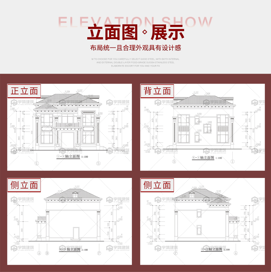| 建筑圖: | 建筑平面圖:一層平面圖,二層平面圖; 建筑立面圖:東立面圖,西立面圖,南立面圖,北立面圖,剖面圖; 大樣圖:樓梯詳圖,細部大樣,門窗大樣 |