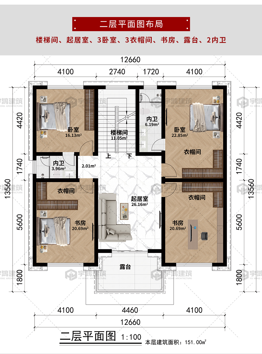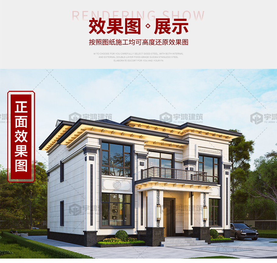 | 風格:新中式 | 層數:二層 | 結構形式:磚混結構 | 圖紙編號:YH-2-6750 |