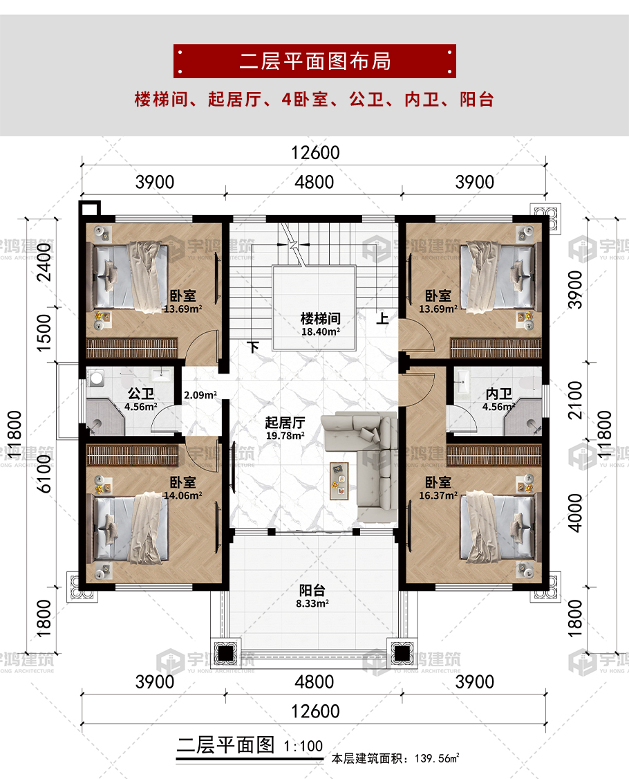 | 開間:12.6米 | 進深:11.8米 | 占地面積:139.56平方米 | 建筑面積:279.12平方米 |