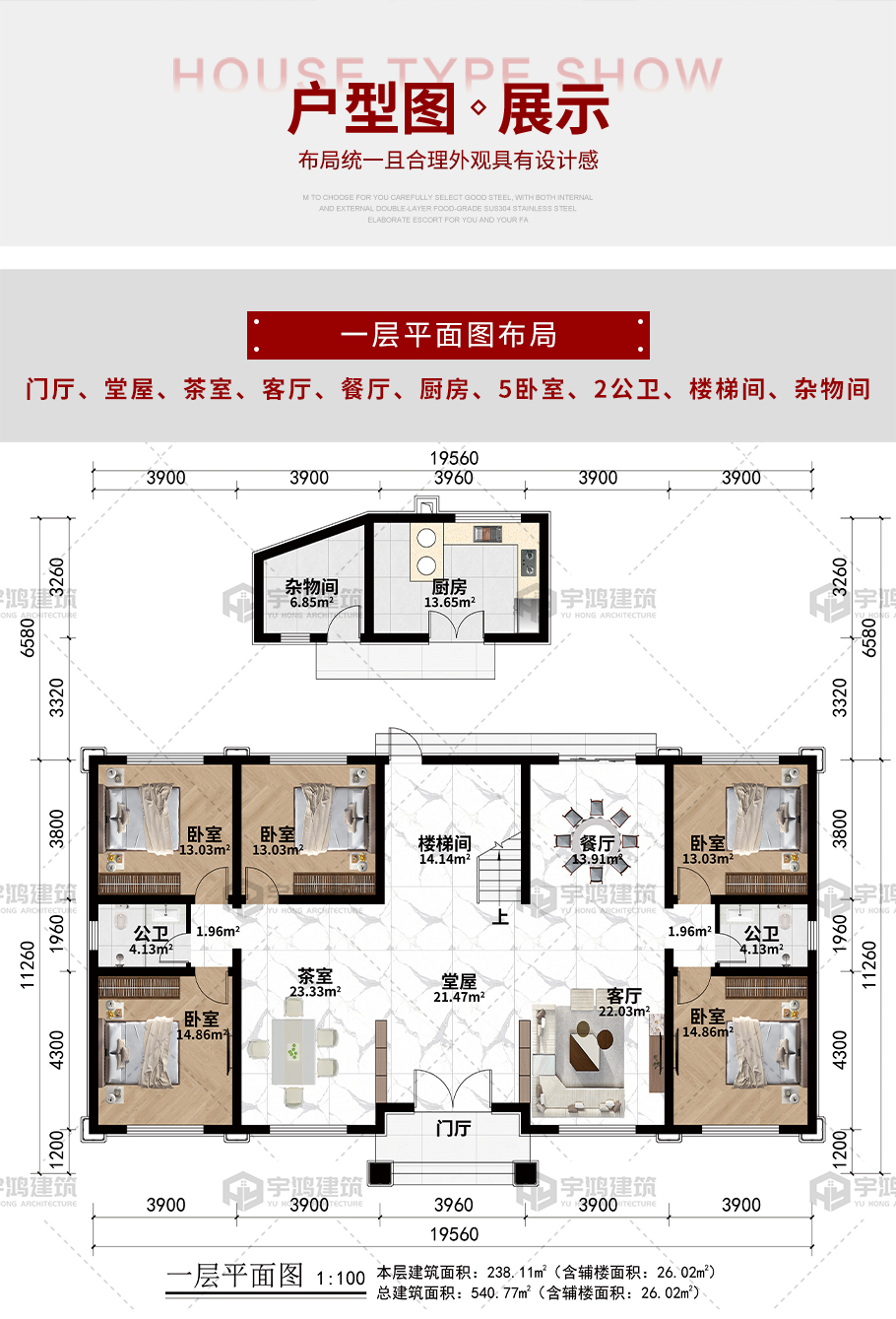 | 開(kāi)間:19.56米 | 進(jìn)深:17.84米 | 占地面積:241.44平方米 | 建筑面積:540.77平方米 |