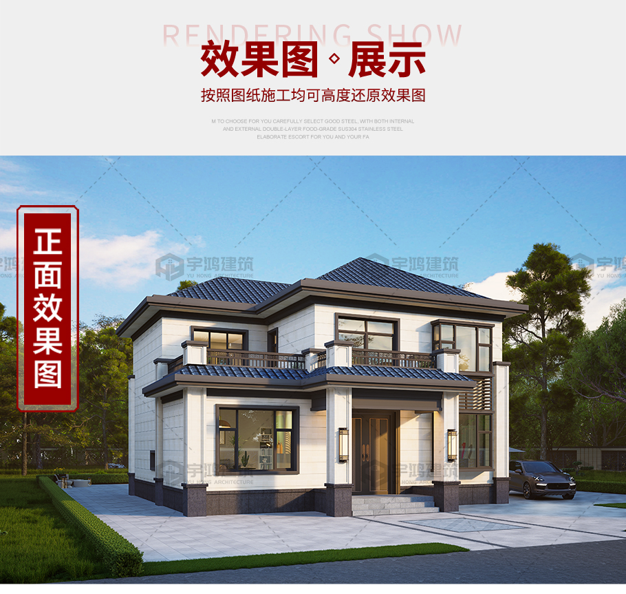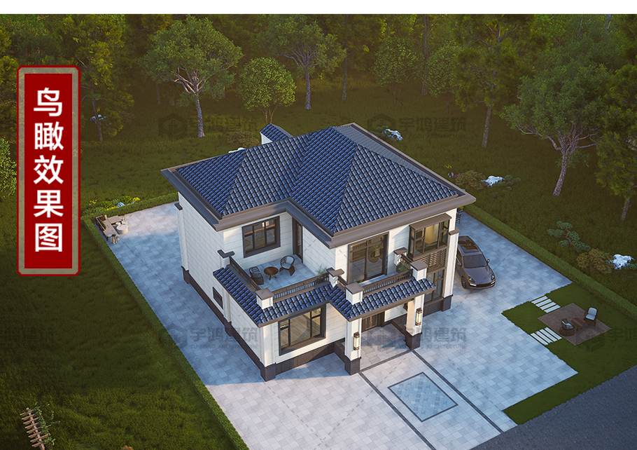 | 風格:新中式 | 層數:二層 | 結構形式:框架結構 | 圖紙編號:YH-2-6817 |