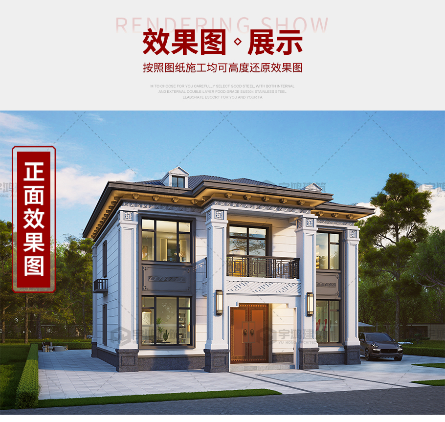 成品圖紙>12.36米x11.76米二層新中式別墅全套圖紙