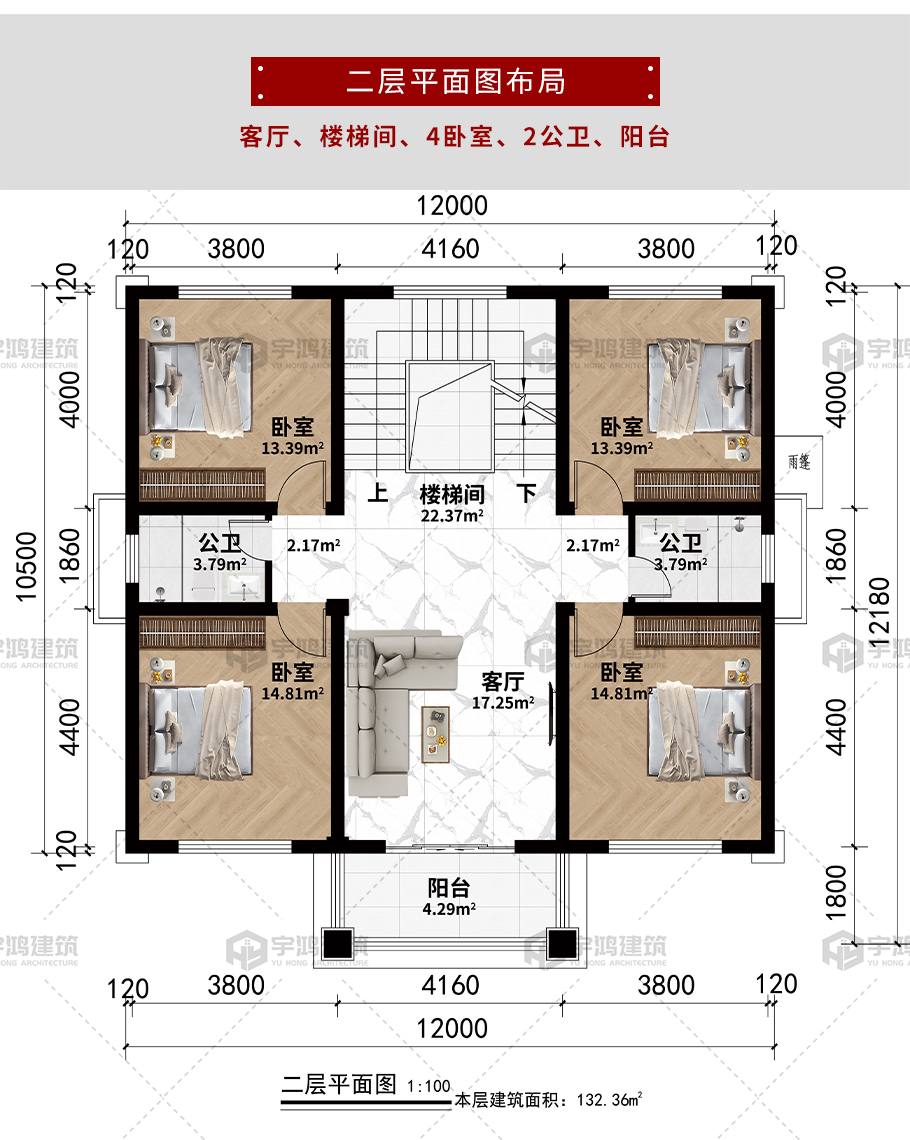 | 開間:12.18米 | 進深:12米 | 占地面積:134.93平方米 | 建筑面積:264.72平方米 |
