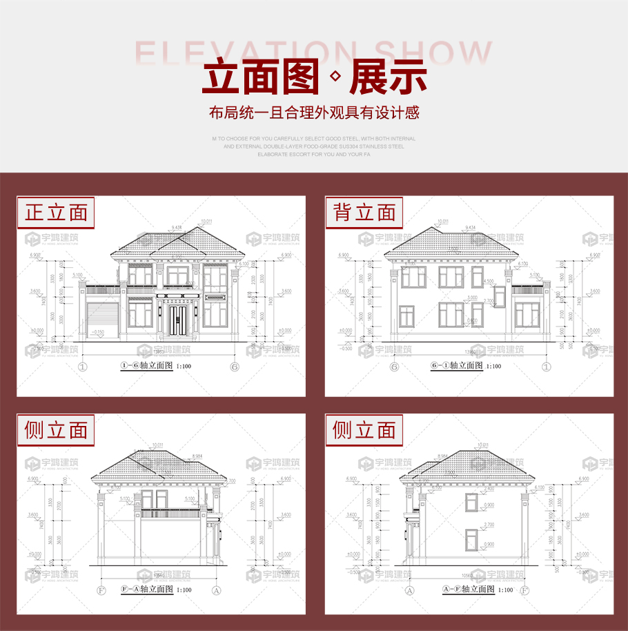| 建筑圖: | 建筑平面圖:一層平面圖,二層平面圖; 建筑立面圖:東立面圖,西立面圖,南立面圖,北立面圖,剖面圖; 大樣圖:樓梯詳圖,細部大樣,門窗大樣 |